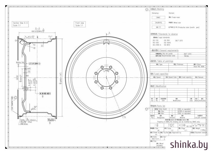| Посадочный диаметр | 34" |